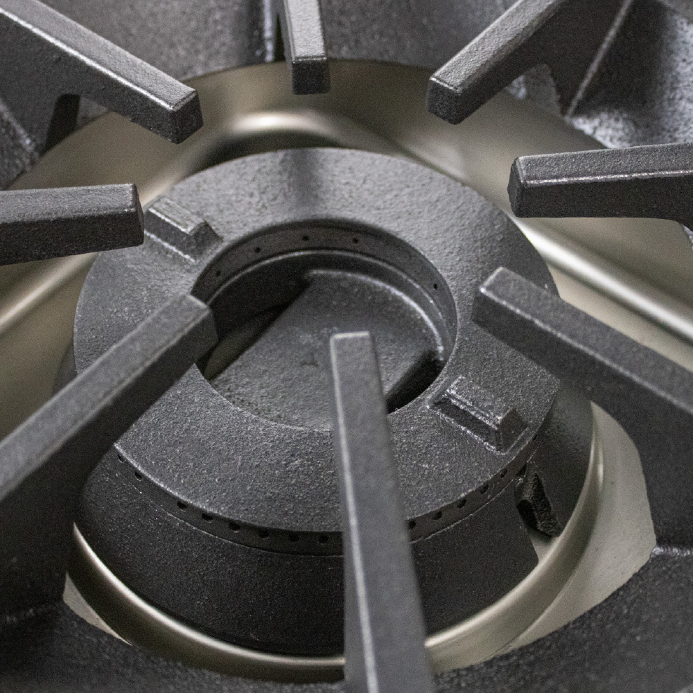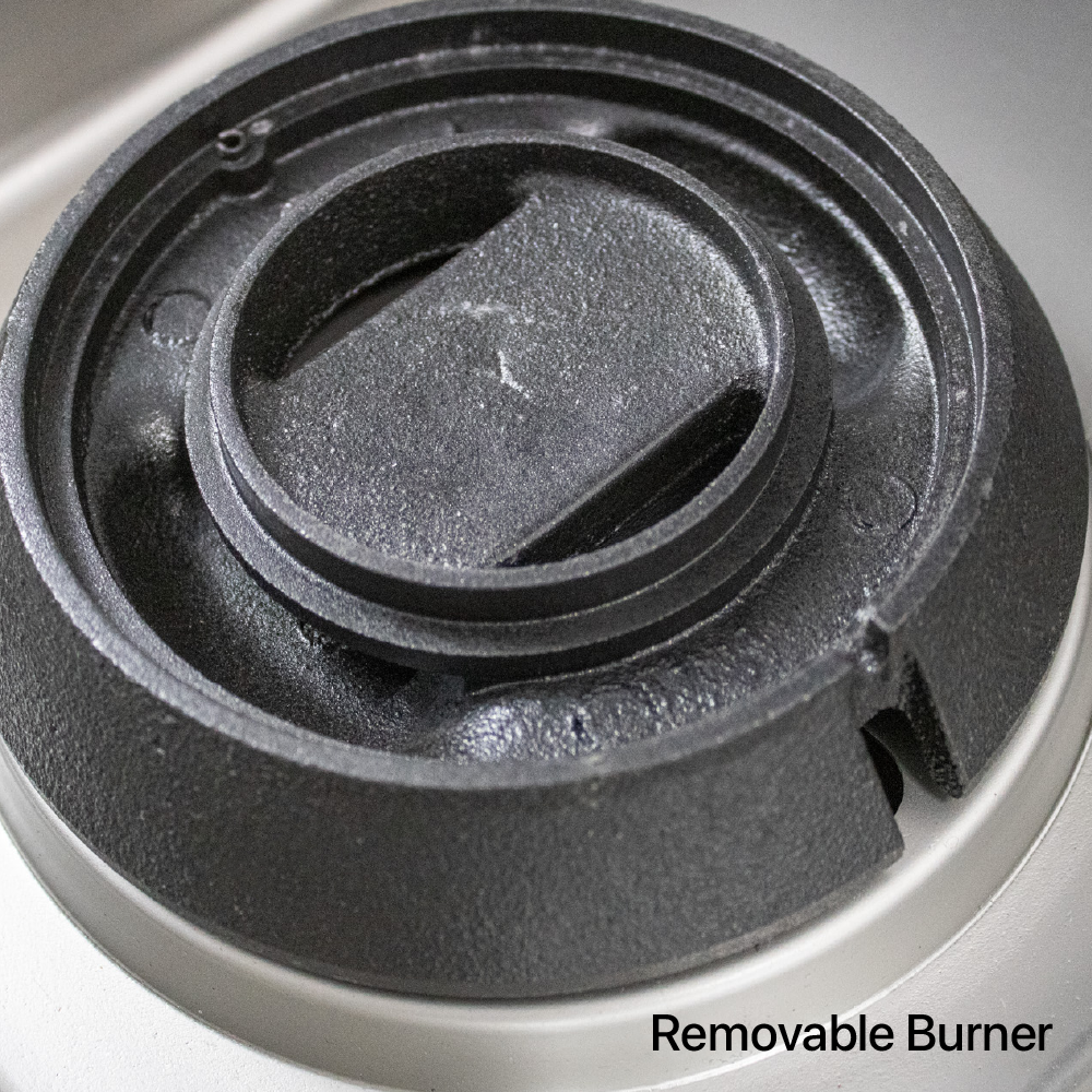 - Improved 2 piece burner assembly protects the pilots for easy cleaning