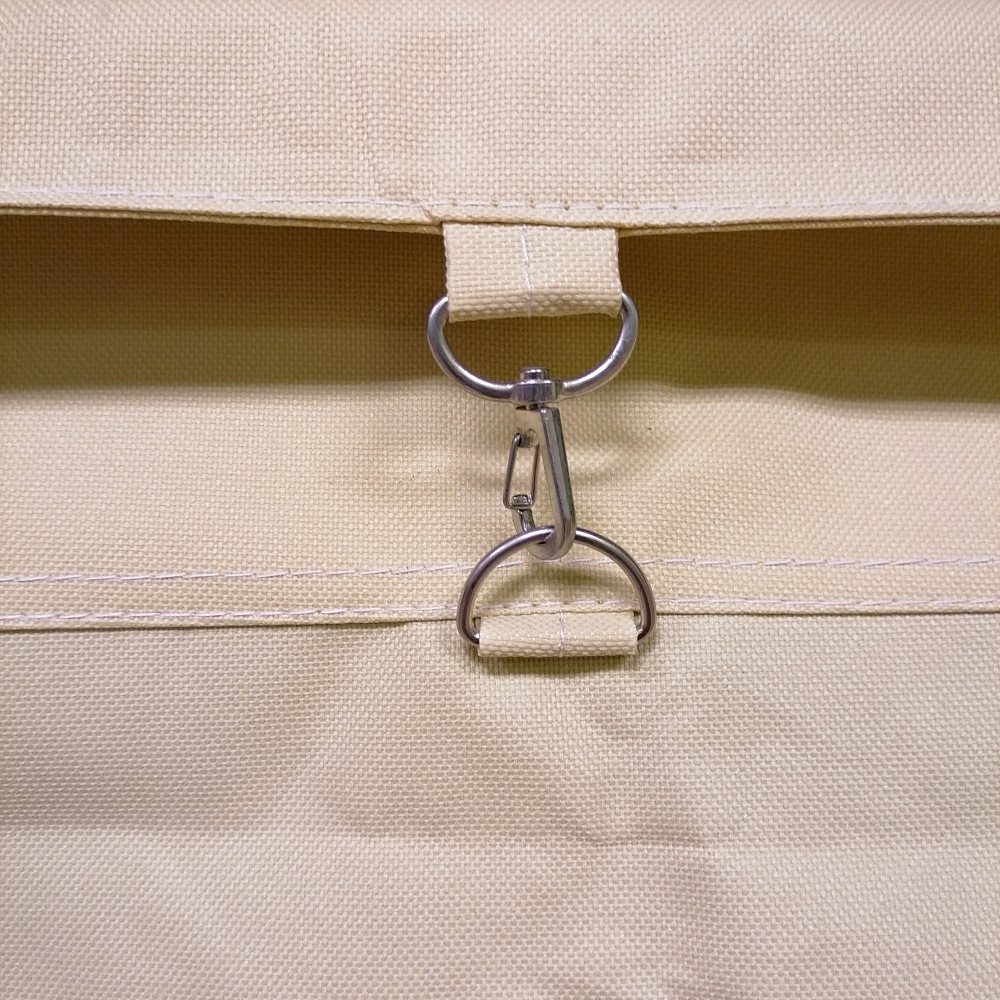 - (10x) Metal clasp hooks to secure canvas bag to frame